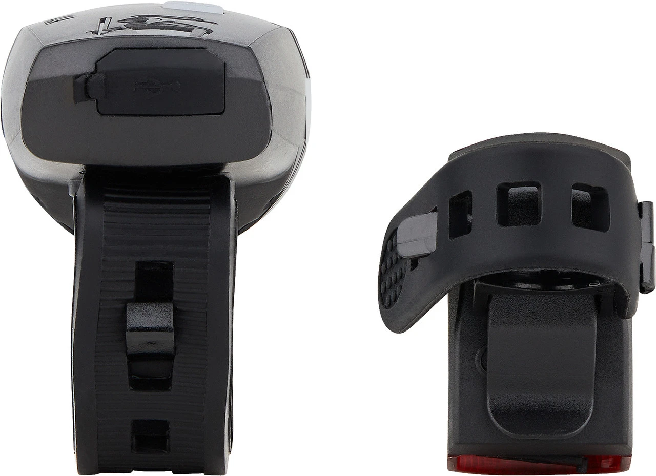 Spezifikationen Frontlicht:Ausführung:Frontlicht (weiß)Montage:LenkerLeuchtmittel:LED (1)Leuchtkraft:15 LuxLeuchtdauer:6 StundenLeuchtweite:35 mBetriebsmittel:Akku (Li-Ion), integriertTechnische Daten Frontlicht:Leuchtmodi:1 ModusLadestandsanzeige:Ja (Batterie schwach)Ladezeit:2 StundenMaße (H x B x L):65 x 40 x 50 mmMaterial:KunststoffSchalter:Ein / AusFreigaben Frontlicht:Zulassung im Straßenverkehr:Ja, für Fahrräder nach §67 StVZOPrüfziffer:K~~1079Spezifikationen Rücklicht:Ausführung:Rücklicht (rot)Montage:Sattelstütze, HinterbaustrebenLeuchtmittel:LED (1)Leuchtdauer:4 StundenLeuchtmodi:1 ModusBetriebsmittel:Akku (Li-Ion), integriertTechnische Daten Rücklicht:Leuchtmodi:1 ModusLadestandsanzeige:Ja (Batterie schwach)Ladezeit:1,5 hMaße (H x B x T):45 x 30 x 30 mmMaterial:KunststoffSchalter:Ein / AusFreigaben Rücklicht:Zulassung im Straßenverkehr:Ja, für Fahrräder nach §67 StVZOPrüfziffer:K~~1100Kompatibilität:Frontlicht: