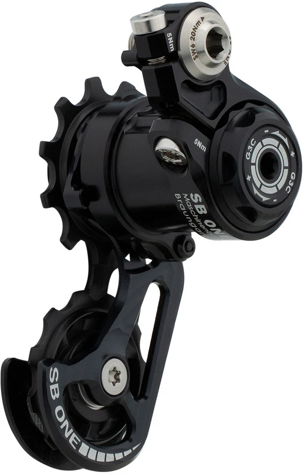 Technische Daten:Einsatzbereich:DownhillMaterial:Aluminium (7075)Dämpfung/Kupplung:stufenlos einstellbarRitzelgrößen:12 – 17 ZähneEinstellbereich Kettenlinie:0 – 18 mm, stufenlosKompatibilität:HG-Naben, 9/10/11-fach KettenFeatures:brachiale Spannkraftstufenlos einstellbare Umschlingung der KetteArretierung des Käfigs erleichtert die Demontage des HinterradsAusrichtung zum Ritzel stufenlos einstellbar bis 18 mmgekapseltes Spannsystem (Drehfeder kann nicht verschmutzen und dadurch nicht stagnieren)einfache Montage am SchaltaugefĂĽr handelsĂĽbliche HG-Naben und alle 9/10/11-fach Kettenkompatibel z.B. mit Reverse Singlespeed-Kit oder Gusset Doublesix RitzelHerstellernummer:schwarz:SBO-G3CDH-000Lieferumfang:1 x Kettenspanner SB ONE DH G3Cohne Spacerohne Ritzel