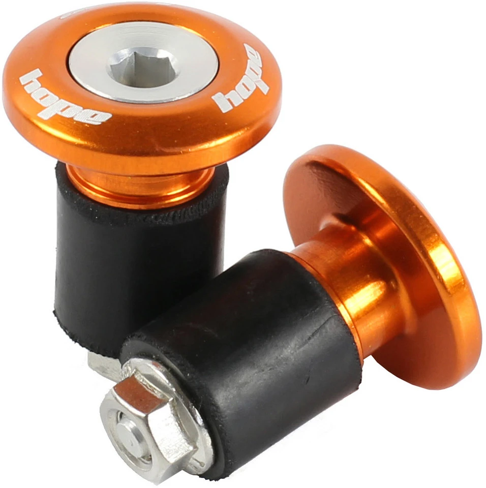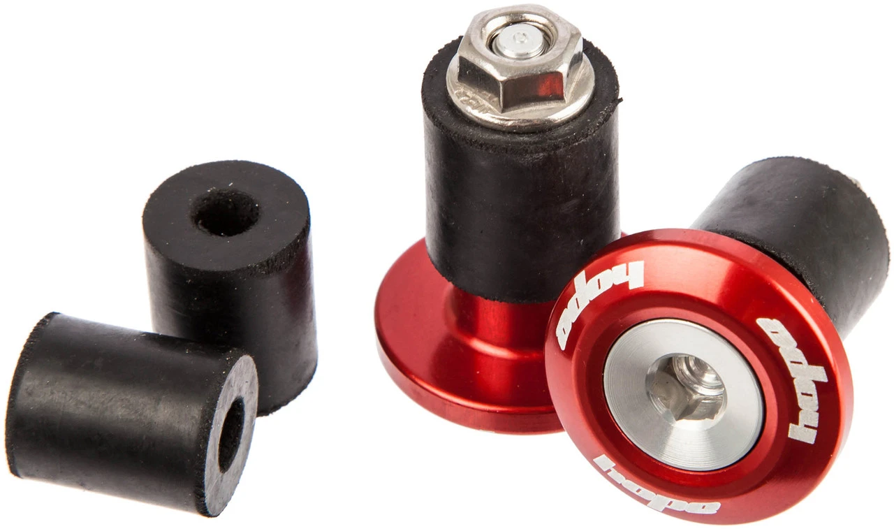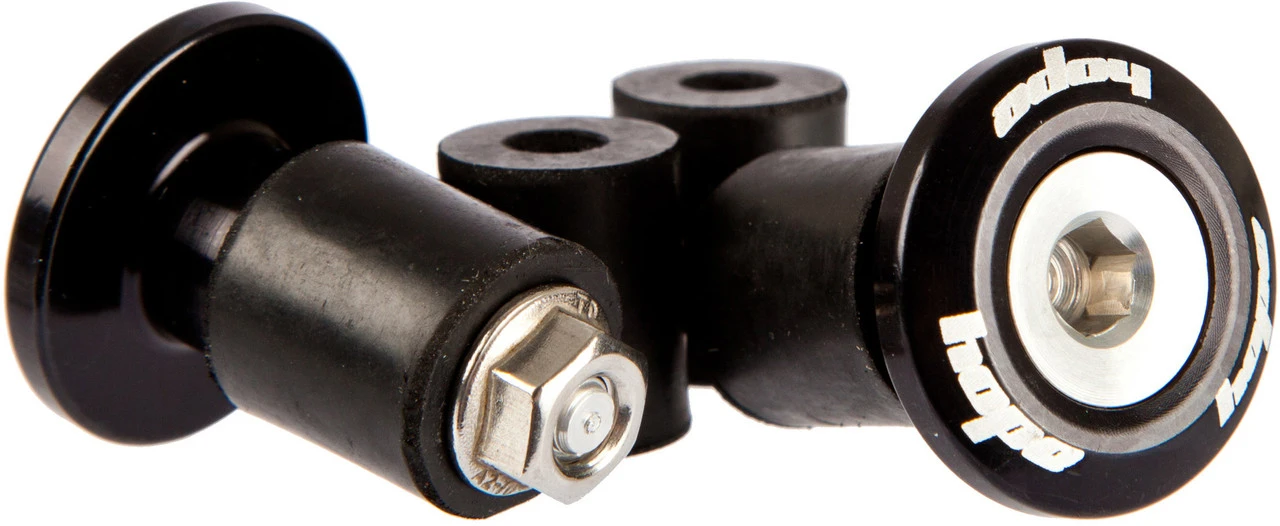 Kultige Hope Lenkerstopfen in brachialer Optik. Die Klemmung erfolgt durch eine Innensechskantschraube. Durch die verschiedenen im Lieferumfang enthalten Lenkergummis sind die Lenkerstopfen mit allen gängigen Durchmessern kompatibel.
