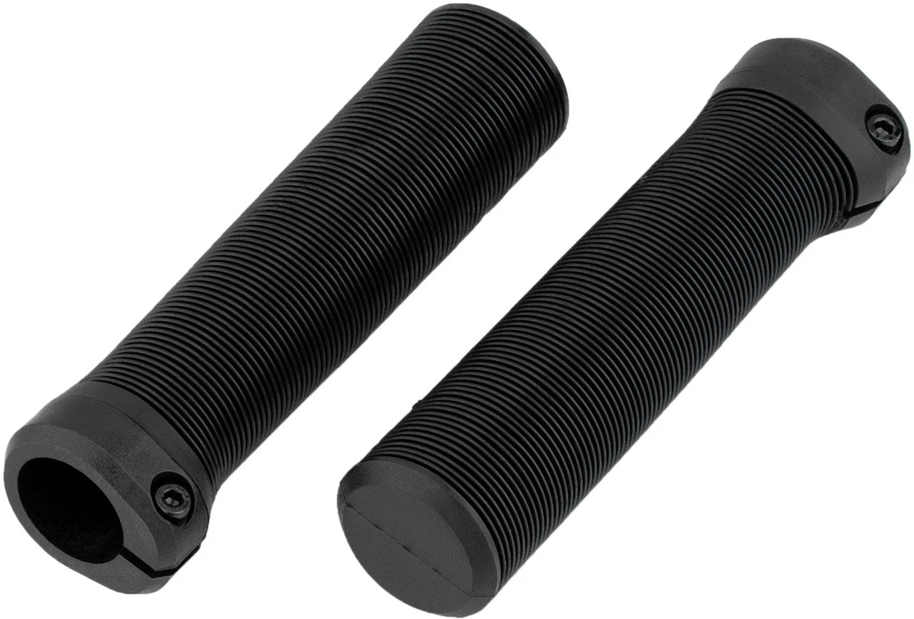 Die 3min19sec Lenkergriffe Lamellen Lock-On kombinieren ein klassisches Rillendesign mit einer modernen Schraubklemmung auf der Innenseite. Das Lamellenmuster gewÀhrleistet optimalen Grip, zugleich wirkt es aber auch dÀmpfend und reduziert Vibrationen. Die Griffe sind 135 mm lang und weisen ein geschlossenes Ende auf. Gefertigt aus robustem Kunststoff und in schlichtem Schwarz gehalten, werden sie an Deinem Lenker lange eine gute Figur machen.