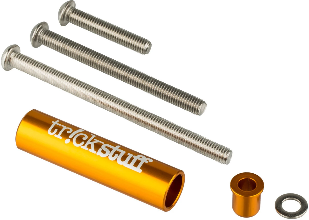 Die Presswurst sorgt dafür, dass sowohl Montagebuchsen als auch Gleitlager von Hinterraddämpfern ohne sonstige Spezialwerkzeuge ein- und ausgepresst werden können.Nur ein 5 mm Innensechskant notwendigFür alle Montagebuchsen mit durchgehendem 12,7 mm Durchmesser und 8 mm Innendurchmesser bis 50 mm Breite.Für alle Gleitlager mit 12,7er Innen- und durchgehendem 15 mm Außendurchmesser.Herstellerhinweis:Die Presswurst ist nicht geeignet für das Ein- und Umpressen von Rahmen- oder anderen Kugellagern!